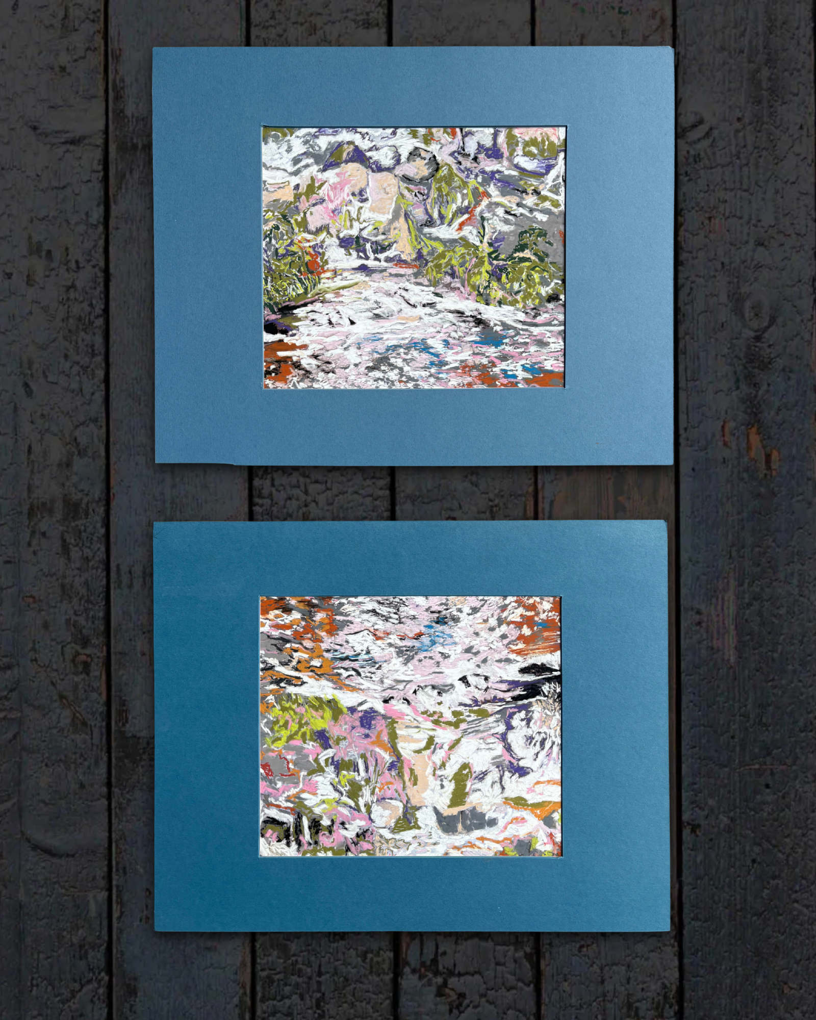 These works are tied into my "Creekeye" series which I developed during my thesis research. They explore the creek as a location embodying life cycles, natural events, landmarks, pathways, and impermanence.
