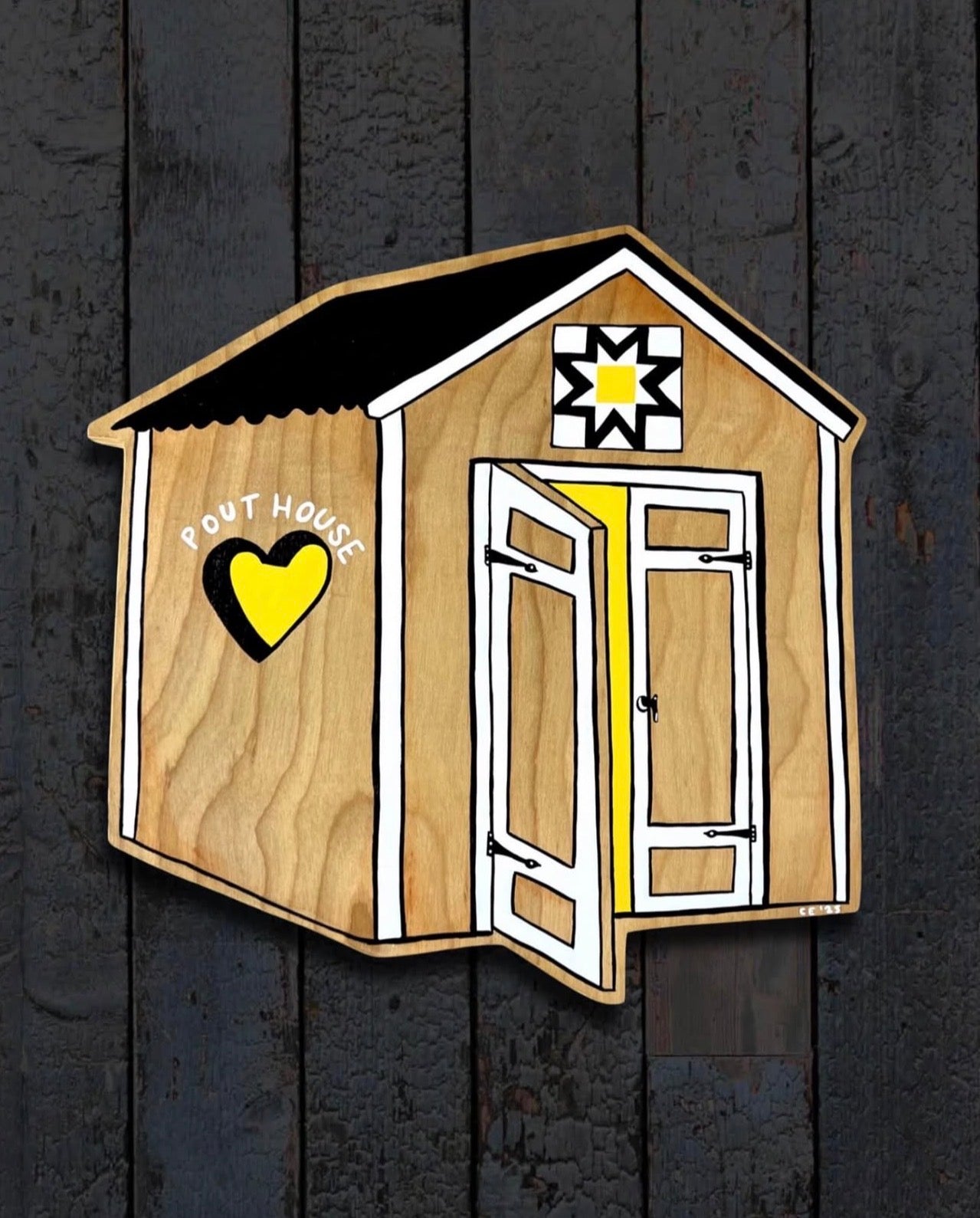 Acrylic, coffee wash, enamel paint on wood